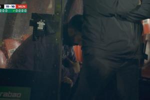点球大战进行中时,镜头给到阿莫林,阿莫林坐在教练席上,他低着头没有看向场上。