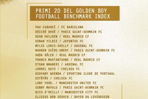 体育资讯10月15日讯 金童奖公布25人候选,库巴西、杜埃、怀森、斯凯利、居莱尔、小贝林厄姆在列。