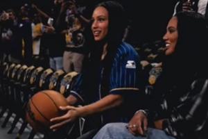 勇士球星库里的妻子阿耶莎携自己的大女儿莱莉现场观看了本场比赛。